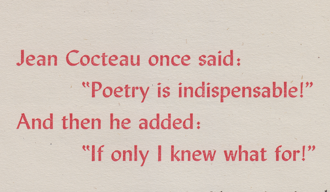 A letterpress rendition set and printed by Ugly Duckling Press of a speech by Stefan Themerson of Gaberbocchus press on the opening of the Little press Book Fair at the National Book League in London, June 4-19, 1971.… Read More